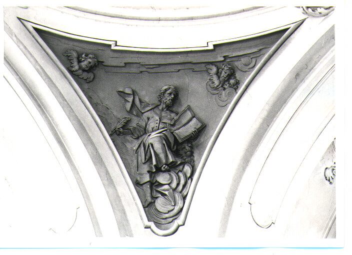 San Marco su una nuvola con i suoi simboli; in alto cherubini