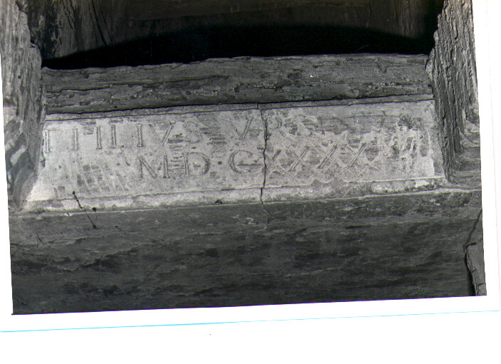 - NOTIZIE STORICO CRITICHE L'iscrizione, lacunosa nella parte iniziale, è incisa su due lastre facenti parte di un monumento non più ricostruibile e reimpiegate come architrave; essa è riferibile al Vescovato di Attilio Orsini