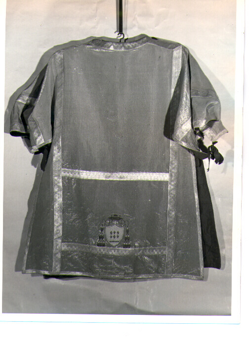 - NOTIZIE STORICO CRITICHE Le due dalmatiche risalgono all'epoca del Vescovo Cassiodoro Margherita, come si ricava dallo stemma presente su entrambe. prive di ricami ed altre decorazioni, sono opera di manifattura locale
