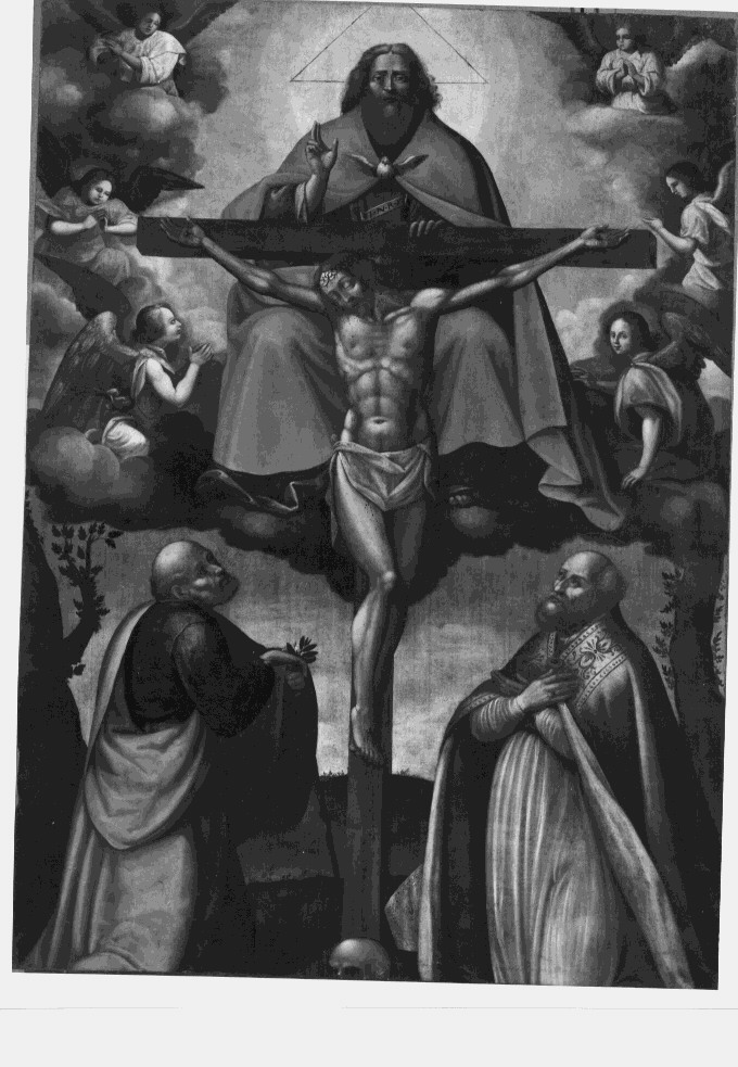 - NOTIZIE STORICO CRITICHE Impostata secondo il frequente schema piramidale, l'opera si presenta quale interessante prodotto della cultura figurativa meridionale tardo cinquecentesca penetrata nella zona. Il cattivo stato di conservazione evidente nelle lacerazioni, nell'allentamento della tela, nell'alterazione dei colori e delle qualità pittoriche e stilistiche del dipinto