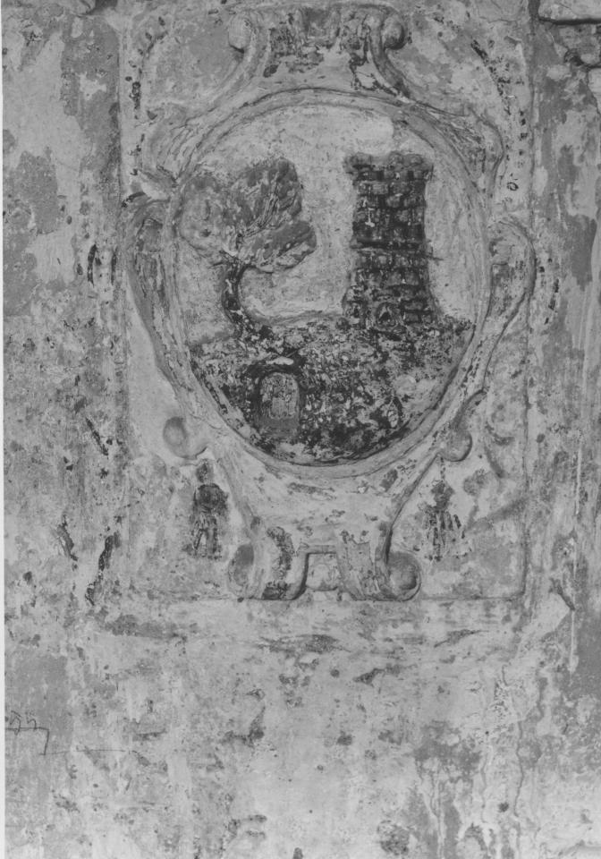 - STEMMI sulla retrofacciata, a sinistra - comunale - Stemma - Comune di Grottole - Paesaggio con una grotta e sopra una torre merlata. Di lato una quercia