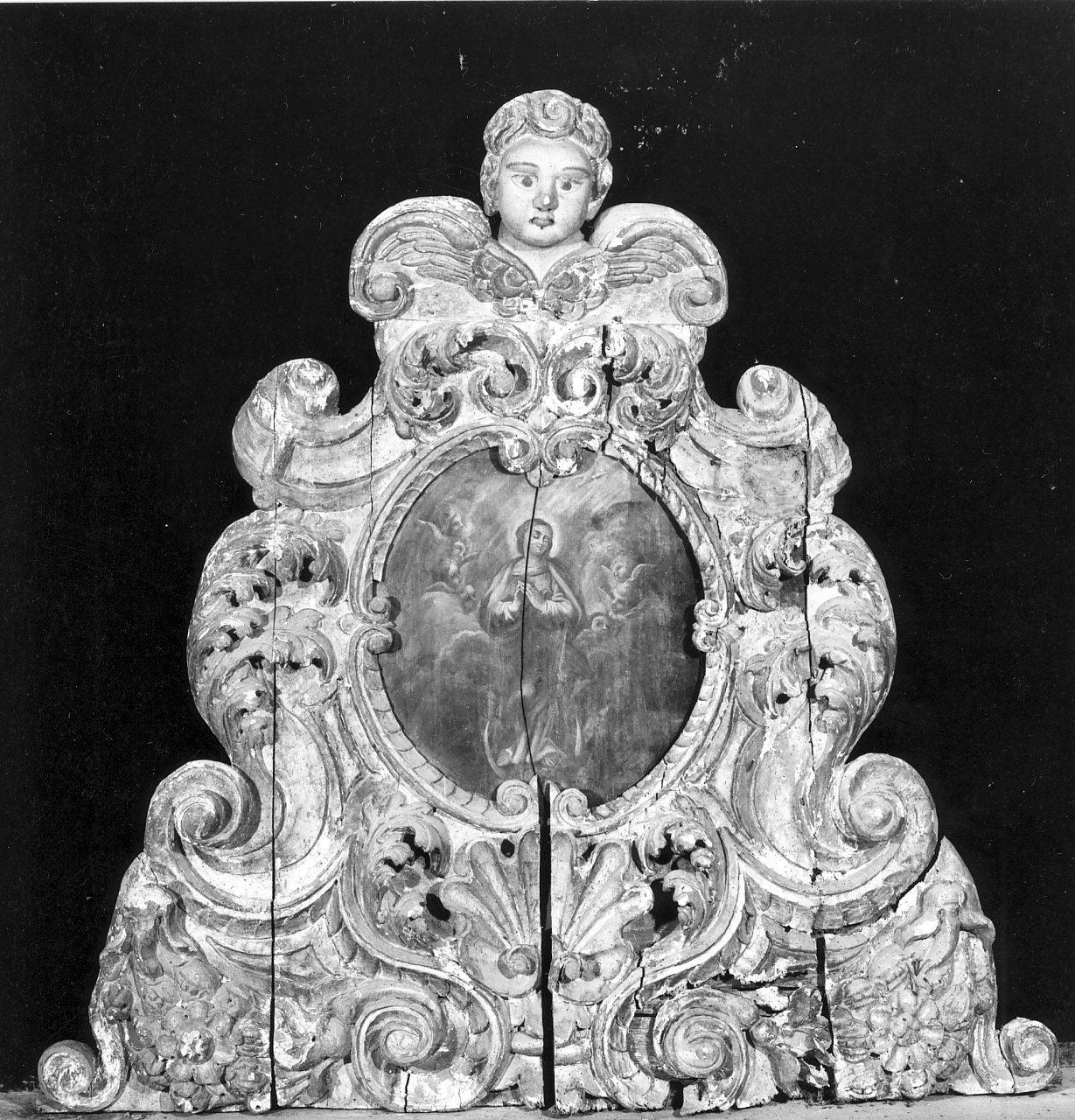 Il dipinto occupa il centro del medaglione che sovrasta l'edicola omonima. L'Immacolata è raffigurata secondo l'iconografia tradizionale, poggiante su una nuvola argentata con falce di luna ed è attorniata da un nugolo di putti