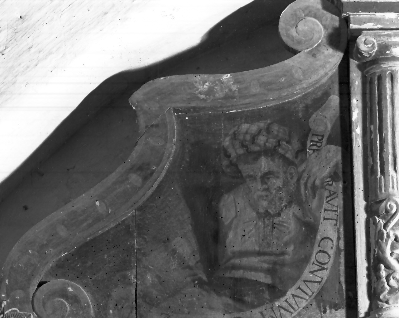 - ISCRIZIONI sul cartiglio del profeta, a sinistra - PRE RAVIT CONVIVIUM - lettere capitali - a pennello -
