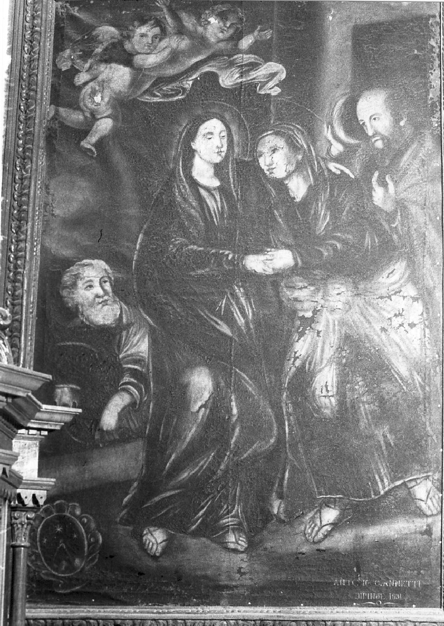 Il momento dell'incontro tra la Vergine e Santa Elisabetta avviene al cospetto di S. Giuseppe e di San Zaccaria che è colto nel momento in cui, toltosi il copricapo, saluta i visitatori. Lo stemma raffigurato è quello della nobile famiglia dei Ferrari-Epaminonda cui spetta la committenza dell'opera. Si trova nella cappella sinistra del transetto. La cornice dell'epoca, è in legno intagliato a motivi fogliacei