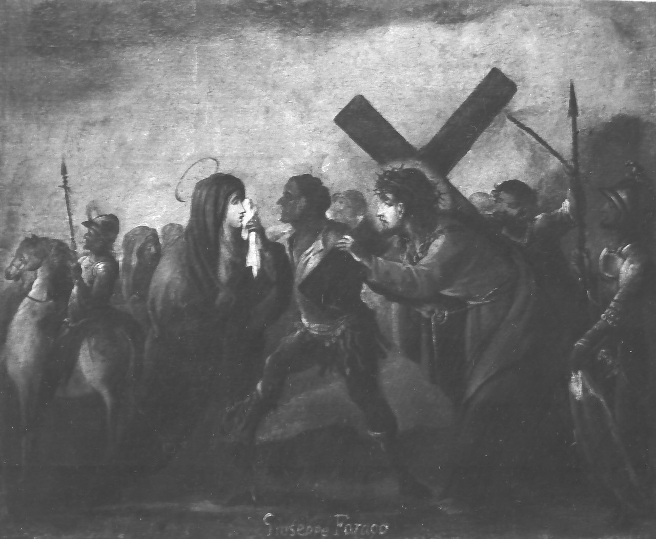 Personaggi: Cristo; Madonna. Figure: soldati romani; astanti