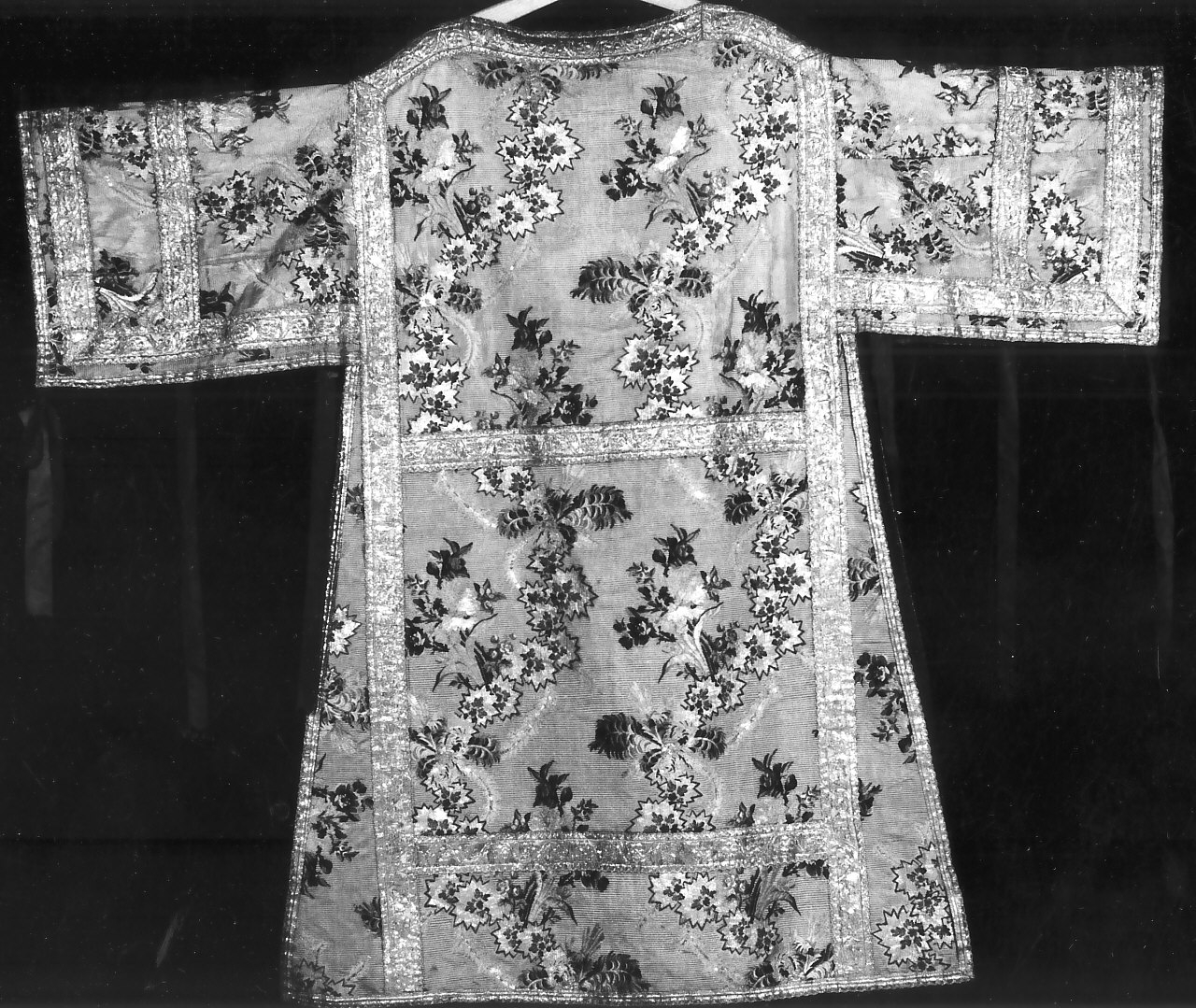Paramento liturgico realizzato in seta con ricami policromi in oro e argento