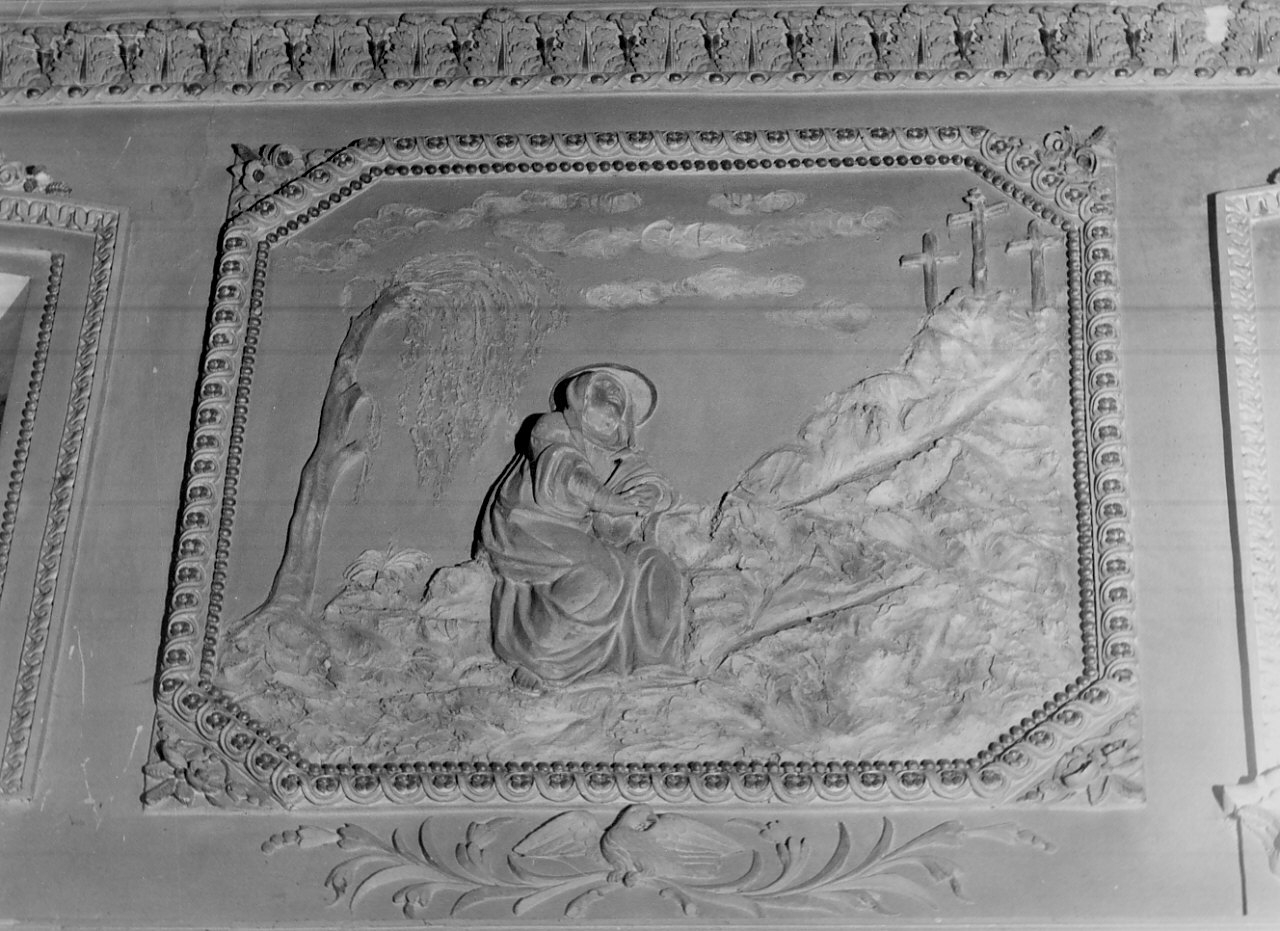 In alto a destra il Calvario, la Madonna seduta a sinistra