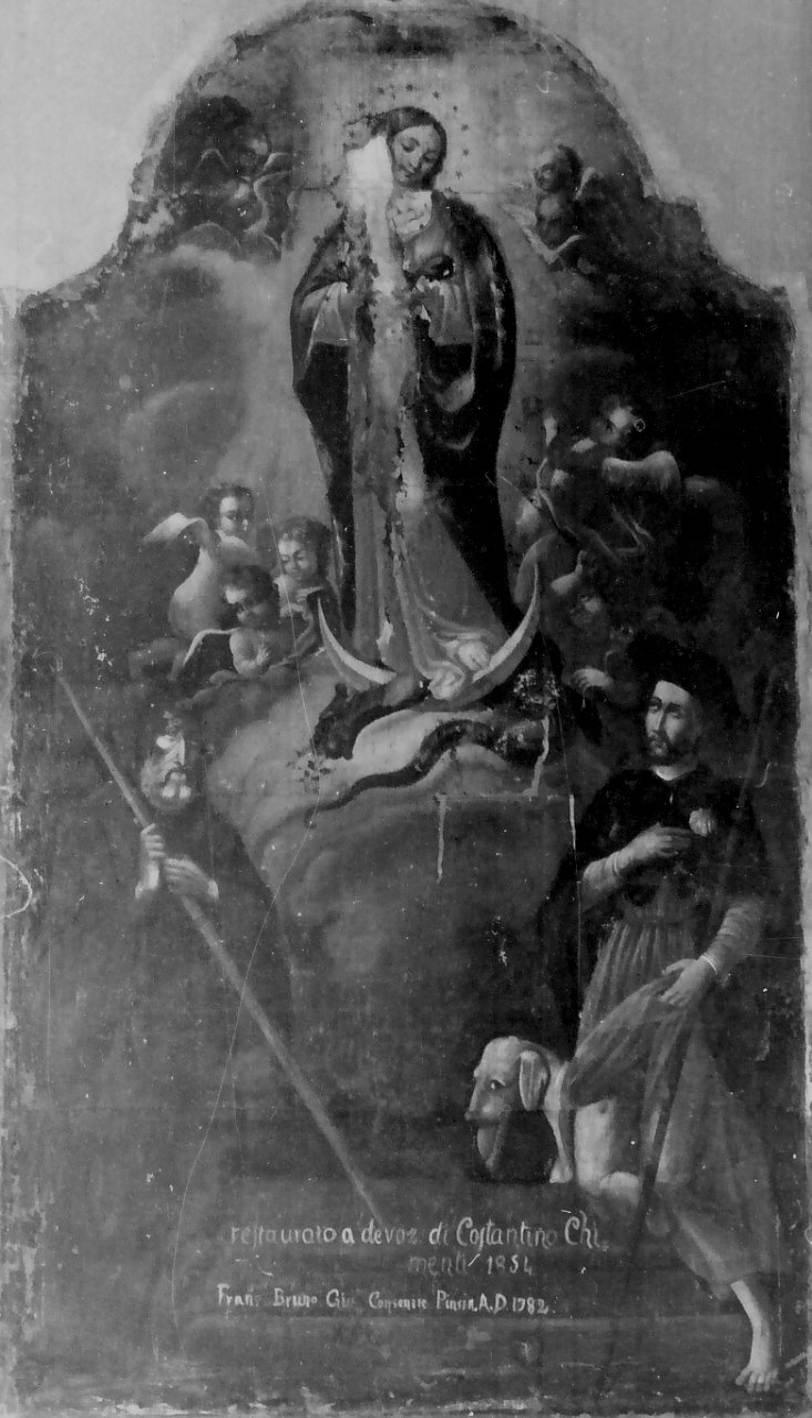 Madonna Immacolata al centro tra angeli in gloria, S. Francesco di Paola e S. Rocco ai lati