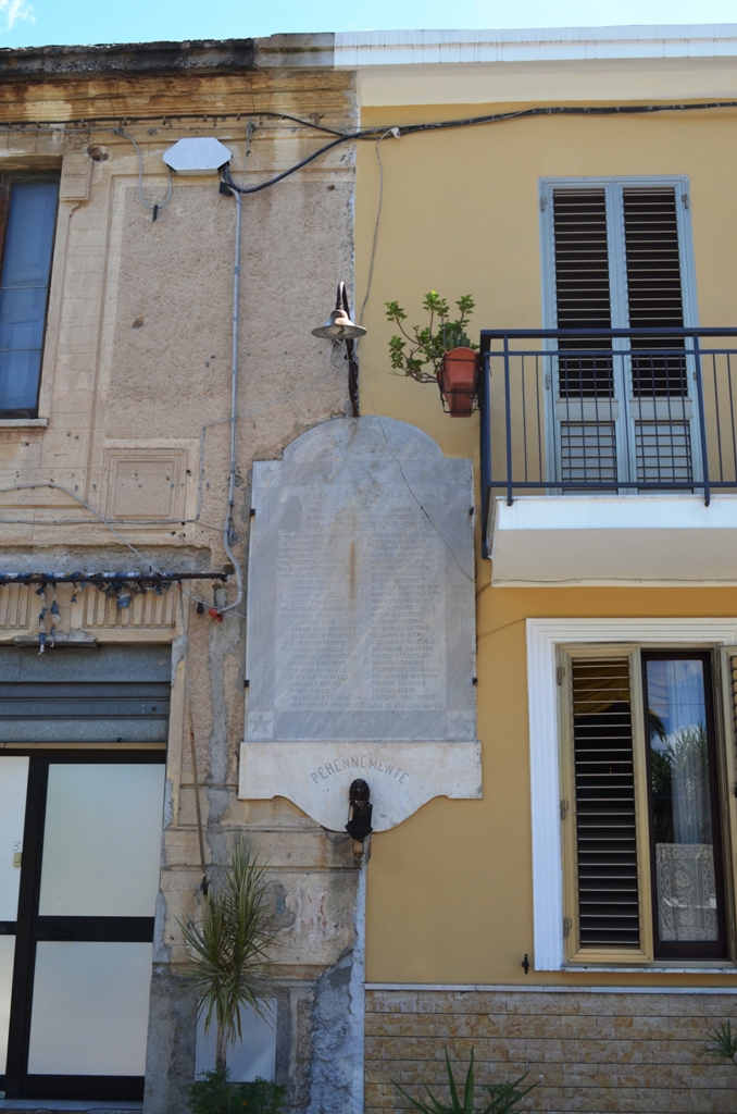 - ISCRIZIONI corpo della lapide - I CITTADINI DI GALLICO/ QUI/ VOLLERO ETERNARE NEL MARMO/ I NOMI DEI LORO GLORIOSI CADUTI/ NELLA GUERRA MONDIALE 1915 – 1918/ S. TEN. LAZZARINO VALENTINO/ RANIERI FILIPPO/ SERG. CALOGERO MARCO/ S. CAPS MORACE ANGELO/ C AP. RIZZUTO GIUSEPPE/ MED. ALAGANA’ FRANCESCO/ SOLD. ALBANESE DEMETRIO/ ALVASIO CRISALLI GIUS / ARRIGO SANTO/ BASILE ANTONINO/ BERTE’ FRANCESCO/ MAR. BORRELLO DOMENICO/ SOLD. BRANCA ROCCO/ CAMA VINCENZO/ CARACCIOLO DOMENICO/ CARACCIOLO PASQUALE/ CARIDI FRANCESCO/ CHECCO PASQUALE/ CHINDEMI FRANCESCO/ CHIRICO DOMENICO/ CHIRICO PASQUALE/ COPPOLA VINCENZO/ CRISALLI ORAZIO/ CRUPI ROCCO/ DE LORENZO FRANCESCO/ DE PASQUALE FORTUNATO || SOLD. DI PASQUALE VINCENZO/ FONTANA DOMENICO/ GERMANO GIUSEPPE/ MAR. LOPRESTI DOMENICO/ SOL. LOPRESTI VINCENZO/ MALARA FRANCESCO/ MARRA FRANCESCO/ MARRA GIUSEPPE/ MARTINO DEMETRIO DI D.CO/ MARTINO DEMETRIO DI F.SCO/ MODAFFERI GIUSEPPE/ MORDA’ FRANCESCO/ NICCOLO’ GIUSEPPE/ NUNNARI GIOVANNI/ PENSABENE ANTONIO/ PIZZIMENTI DIEGO/ PIZZIMENTI PASQUALE/ POSTORINO GIUSEPPE/ SCORDO SEBASTIANO/ SURACE GIUSEPPE/ TRAMONTANA GESUALDO/ TRAMONTANA GIUSEPPE/ TRAPANI GIUSEPPE/ TRIPODI SANTO/ ZACCONE CRISTOFARO/ ADDI’ 28 OTT. 1934 XIII E.F./ PRESENTI -