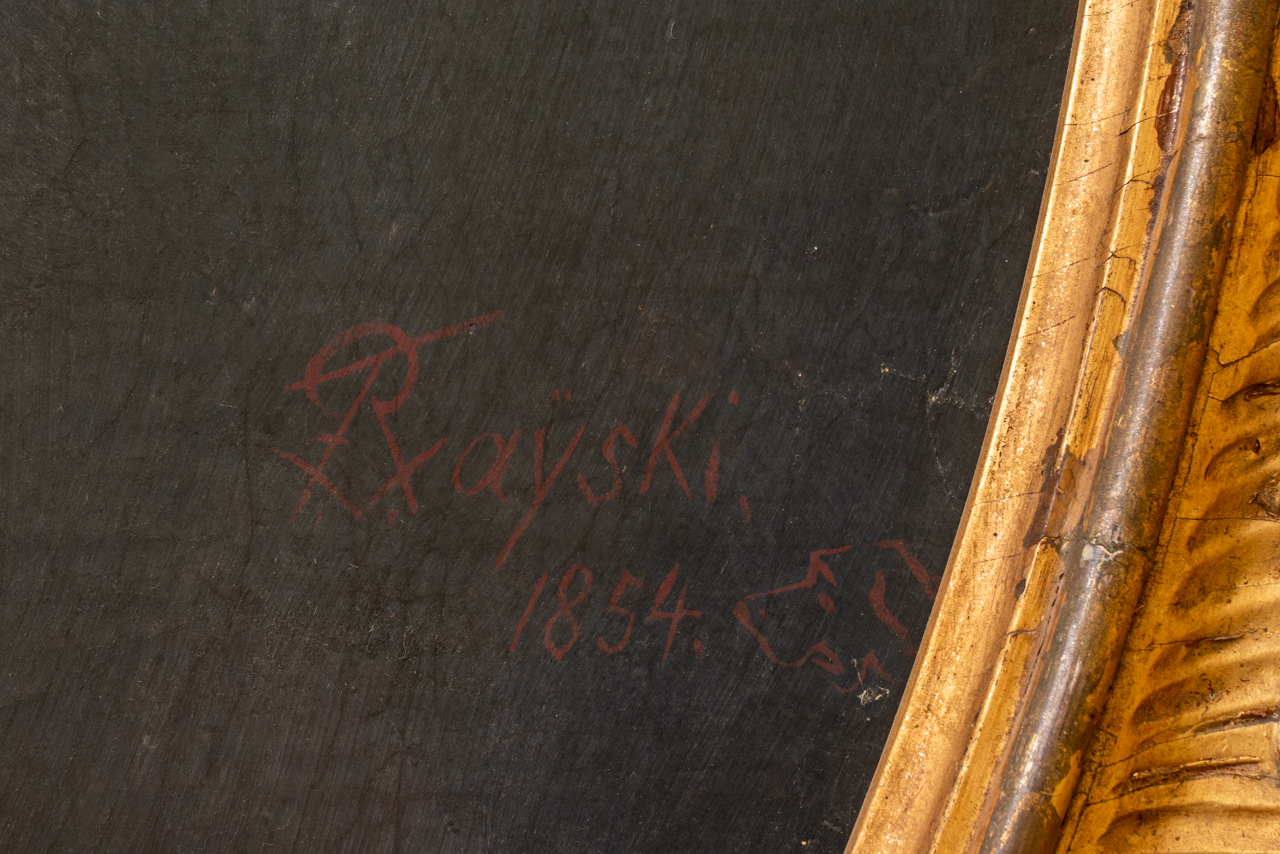 - ISCRIZIONI lato destro - RaysKi. / 1854 - Von Rayski, Louis Ferdinand - stampatello alto-basso, numeri arabi - a pennello - danese
