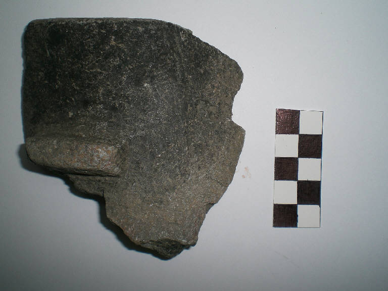 Frammento di orlo di contenitore in pietra ollare non realizzato al tornio idraulico