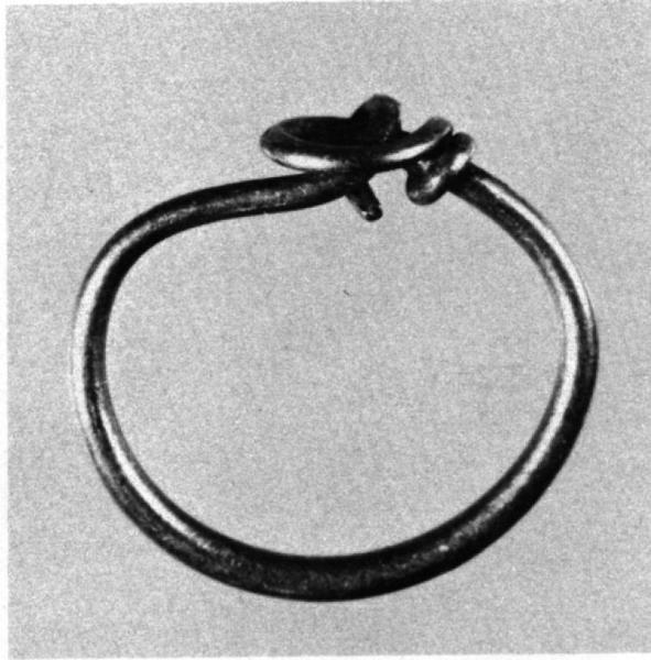 Coppia di orecchini a cerchio semplice in filo sottile e con aggancio a incrocio; lieve ingrossamento dello spessore nella parte inferiore.