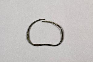 Lamina a nastro piegata e aperta alle terminazioni con estremità affusolate di sezione rettangolare.