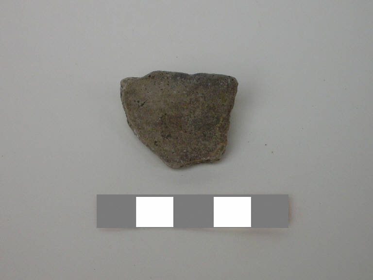 Orlo+ parete di scodella\nSi conserva un frammento di orlo svasato con bordo arrotondato e parte della vasca a calotta.\nSulla superficie esterna dell'orlo reca una decorazione impressa a motivi ovali disposti in obliquo.\nCorpo ceramico grossolano, a superficie esterna e interna grezza.\nColore nucleo, superficie esterna e superficie interna: bruno chiaro.