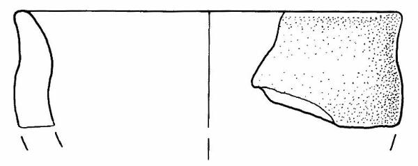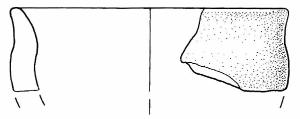 Orlo+ parete di scodella\nSi conserva un frammento di orlo svasato con bordo arrotondato e parete.\nCorpo ceramico semi grossolano, a superficie esterna e interna grezza.\nColore nucleo, esterno e interno: bruno chiaro.