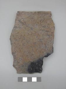 Orlo+ parete di olla\nSi conserva un frammento di orlo distinto con bordo appiattito e parete.\nCorpo ceramico grossolano, a superficie esterna e interna grezza.\nColore nucleo: grigio, esterno, interno: bruno.
