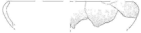 Orlo+ parete di olla\nSi conservano quattro frammenti di orlo rientrante con bordo appiattito e parete.\nCorpo ceramico grossolano, a superficie esterna e interna lisciata sommariamente.\nColore nucleo, esterno, interno: bruno.