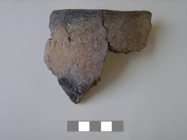 Orlo + parete di olla\nSi conservano due frammenti di orlo svasato con bordo appiattito e parete.\nCorpo ceramico grossolano, a superficie esterna e interna grezza.\nColore nucleo: grigio, esterno e interno: bruno.