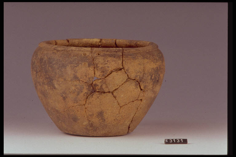 Vaso a corpo troncoconico ovoidale capovolto, con una solcatura sotto il labbro