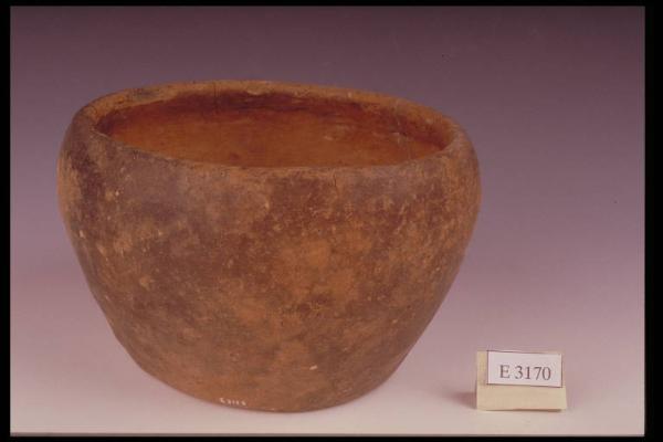 Ciotola a corpo troncoconico, orlo leggermente rientrante, fondo piano.