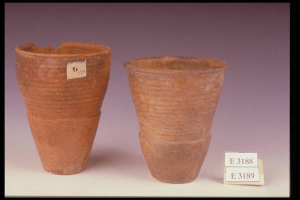 Bicchiere a risega mediana tipo D1, con due stampiglie