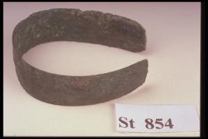 Frammento di armilla in lamina bronzea costolata, decorata da motivi a denti di lupo