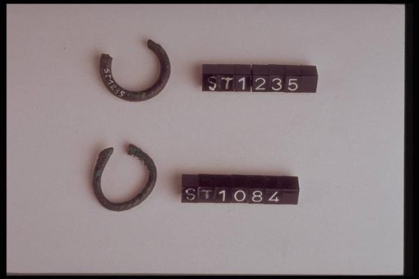 Pendaglio di verghetta ripiegata a cerchio, ricoperto da filo di bronzo avvolto a spirale