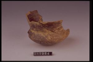 Bicchiere carenato con fondo ombelicato. Colore non omogeneo bruno nerastro; superficie esterna semilucida.