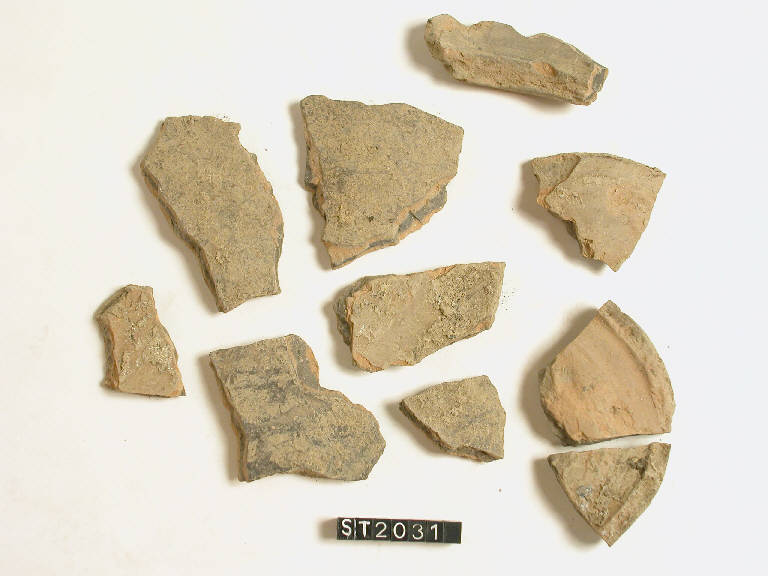 Recipiente di forma chiusa, di cui non è possibile stabilire con esattezza la forma; fondo concavo. Frattura nera con piccoli margini arancio.