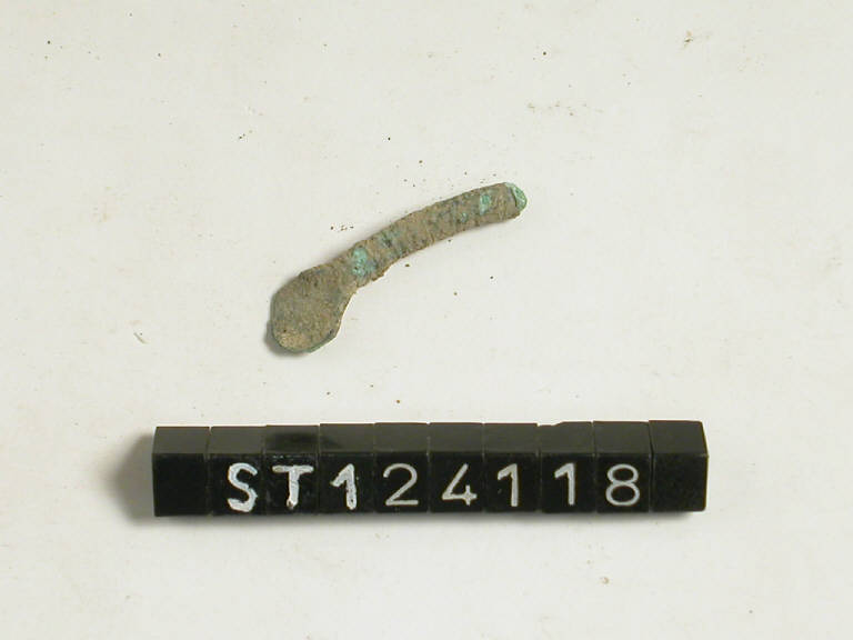 Frammento di arco e staffa di fibula ad arco semplice decorato da fitta spirale.