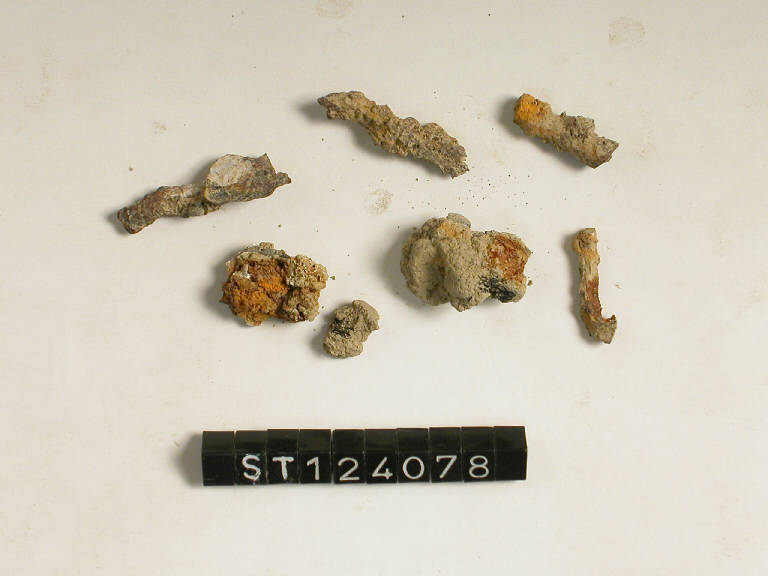 4 frammenti di verghetta di ferro e 2 frammenti di ferro con frammenti di ossa (vedi annotazioni).