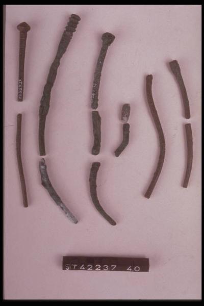 Spillone con capocchia cilindrica decorato a spirale incisa.