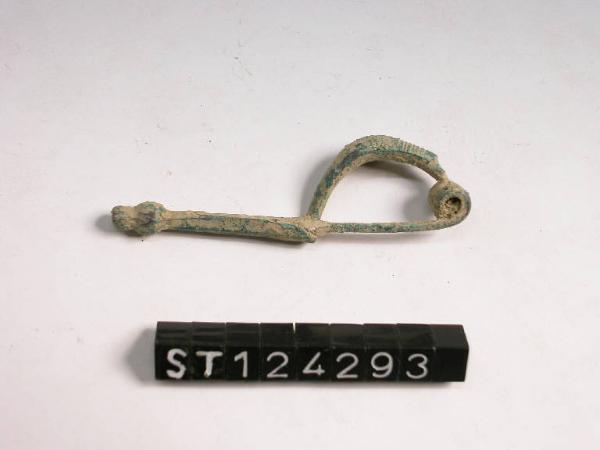 Fibuletta ad arco pieno con lunga staffa desinente a doppio globetto (vedi annotazioni).