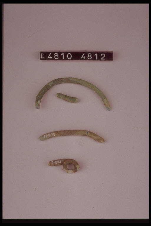 Frammento di molla e attacco dell'arco di fibula ad arco semplice.