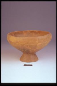 Coppa a corpo troncoconico, orlo leggermente rientrante, basso piede troncoconico.