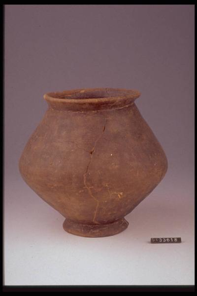 Urna a corpo biconico, breve labbro svasato, basso piede obliquo.
