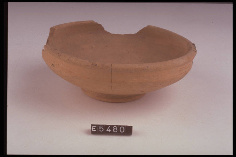 Coppetta a corpo troncoconico, orlo arrotondato sottolineato da una piccola gola, basso piede ad anello.