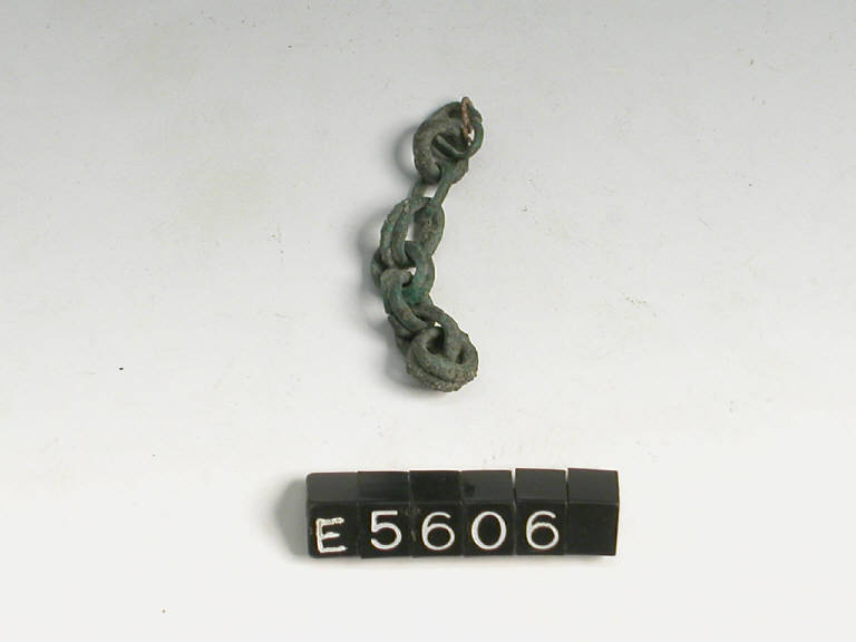 Frammento di catenella in bronzo formata da anellini di sezione circolare posti in coppia