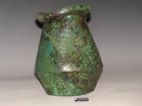 Brocca tipo Gallarate, labbro distinto, svasato, quasi piatto, di forma verticale a fascia delimitato da due sottili solcature; ventre bi-troncoconico con carenatura nel terzo inferiore; fondo piano con tre sottili solcature intorno al pernio del tornio.