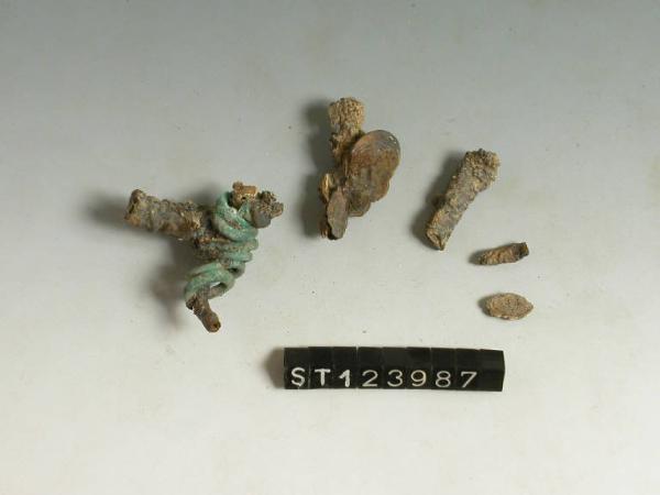 Frammenti di verghetta in ferro; uno di essi reca anellini in bronzo saldati al corpo.