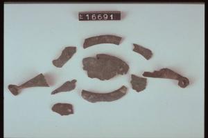 Frammento di arco di fibula a navicella decorato da motivi lineari incisi