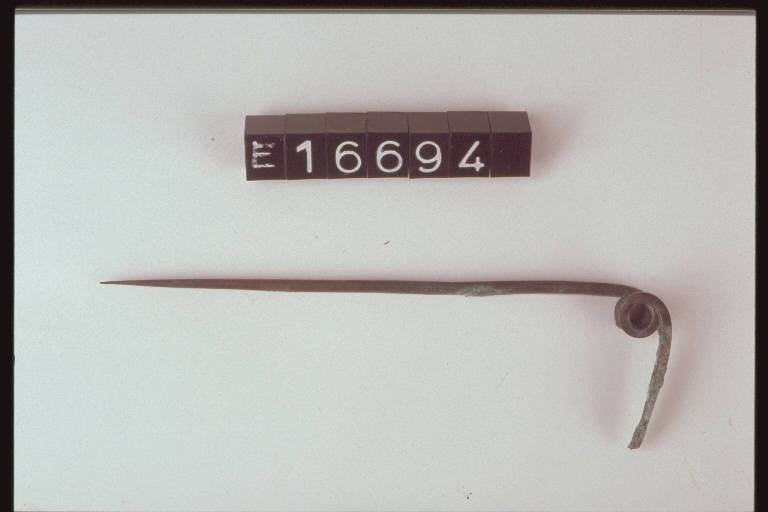 Ago e molla di fibula con attacco dell'arco
