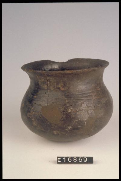 Bicchiere globulare con diametro massimo nella parte inferiore. Solcature sotto il collo