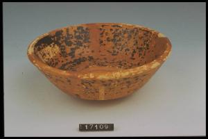 Ciotola a vernice nera tipo Lamboglia 16, con tre cerchi concentrici incisi sul fondo interno; iscrizione a graffito sul fondo esterno