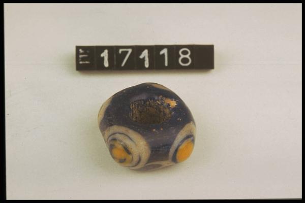 Perla di pasta di vetro blu a occhi gialli e bianchi