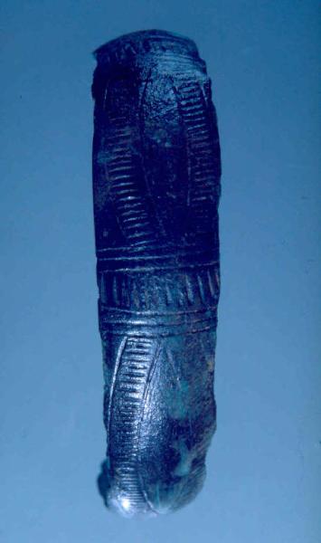Armilla di nastro a capi aperti, con sezione piano-convessa e decorazione lineare incisa