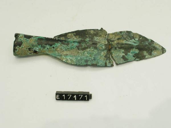 Punta di lancia a profilo ovale con nervatura mediana e innesto a cannone