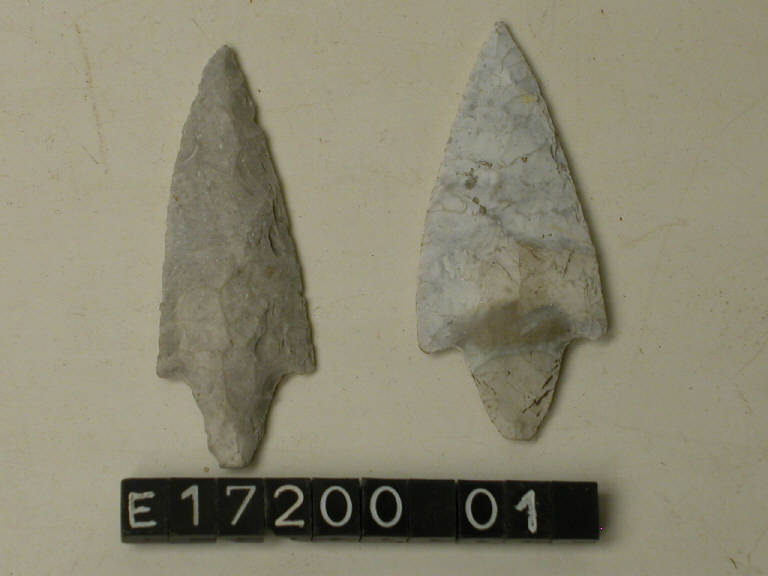 Punta di freccia peduncolata a spalle orizzontali in selce bianca