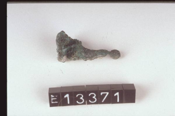 Frammento di nastro assottigliato ad un'estremità e desinente a globetto.