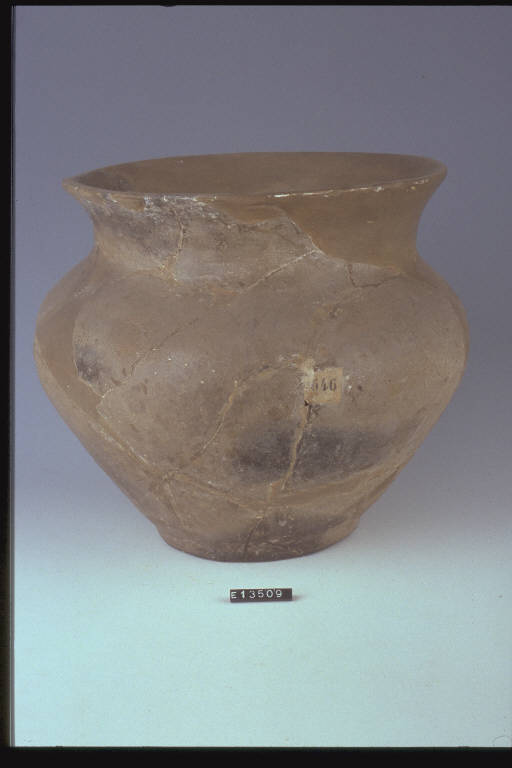 Urna a corpo troncoconico con spalla arrotondata e labbro svasato.